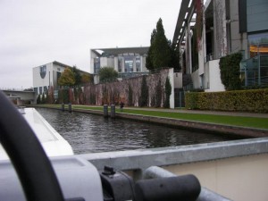 Wir legen um 8:30 Uhr ab zur Königsetappe dieser Reise. Leider ein total verregneter Tag. Trotzdem fahren wir langsam vorbei an Haus der Kulturen, Hauptbahnhof, Kanzleramt, Abgeordnetenbüros, Reichstag und Museumsinsel, ein tolles Gefühl mit unserer freeda. Fahrgastschiffe sind wenige unterwegs.